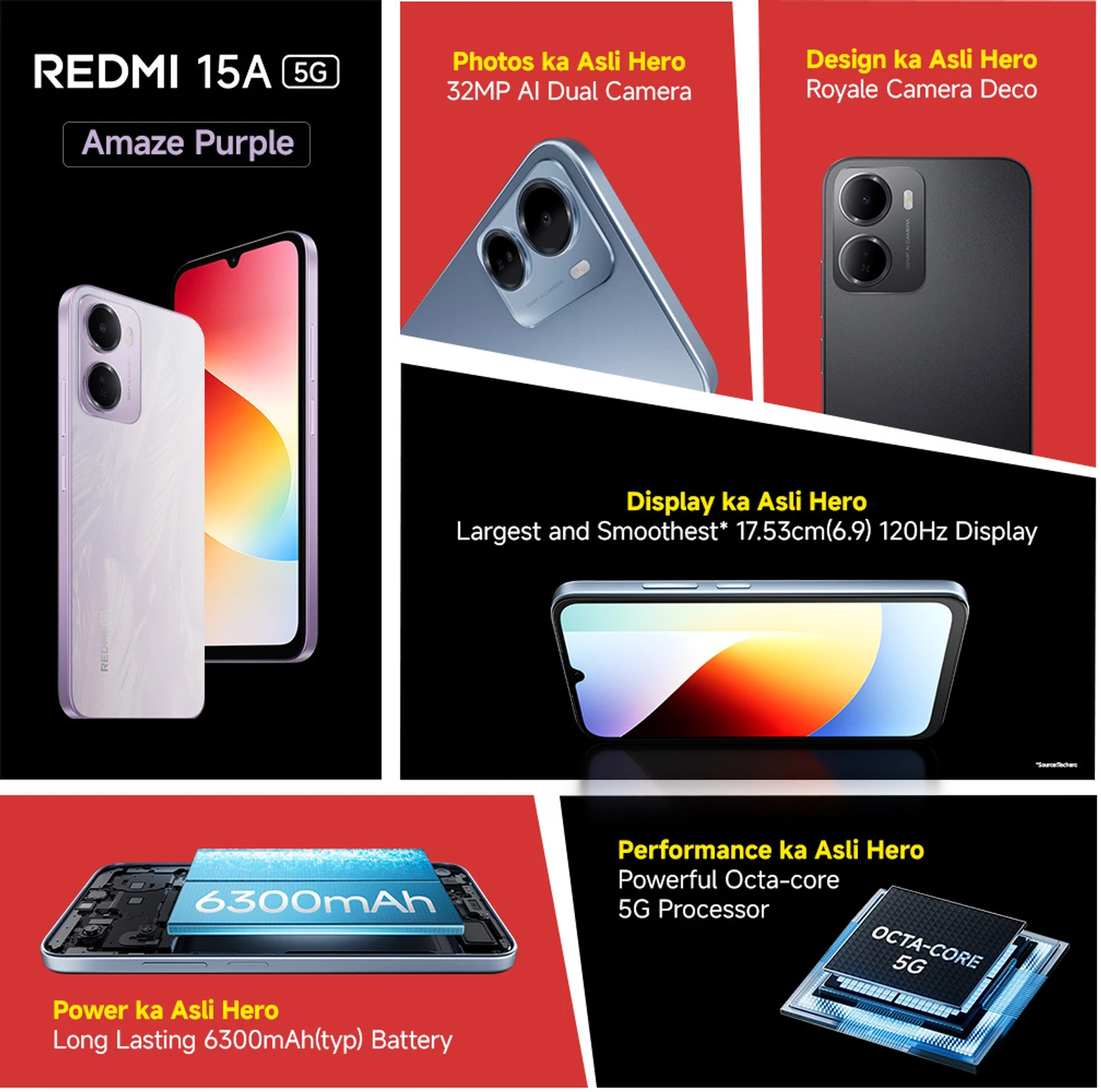 The Redmi 15A 5G (Amaze Purple, 4GB RAM, 64GB Storage) is a “Performance ka Asli Hero” budget-friendly smartphone launched in March 2026. It is designed to offer a balanced mix of an immersive display, massive battery life, and reliable 5G connectivity for daily tasks.