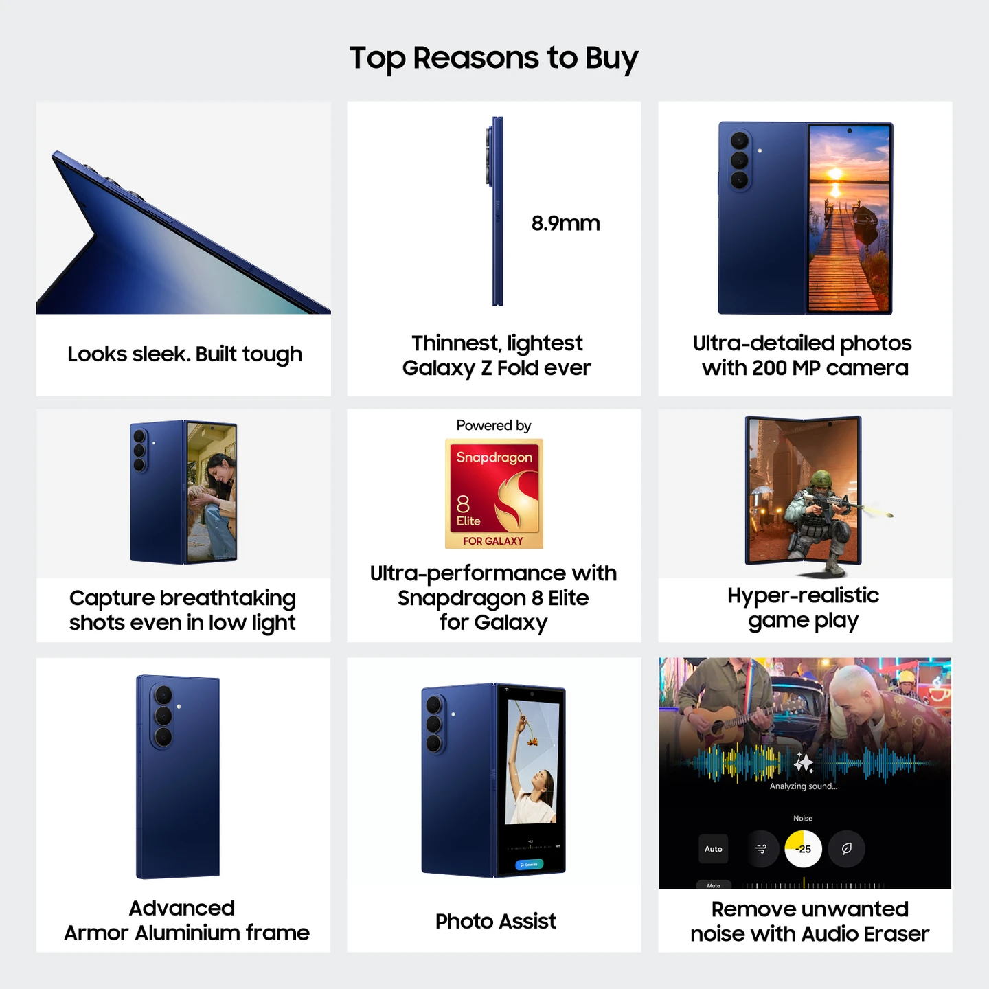 Performance: Powered by the Snapdragon 8 Elite for Galaxy (3nm), offering a 38% boost in CPU and 41% faster AI processing over the Z Fold6.